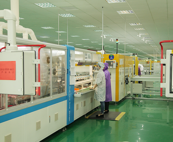 徐州嘉寓光能科技有限公司是北京嘉寓門窗幕墻股份有限公司(股票代碼:300117)的全資子公司,擁有行業內領先水平的高度自動化光伏組件生產基地,年產能2GW。目前,徐州嘉寓光能具備單多晶、貼膜、半片、雙玻、9BB、拼片、超輕薄組件以及大尺寸組件的生產技術,產品輸出功率可涵蓋270W至650W等各不同級別。公司組件生產車間擁有著行業內先進的自動化生產線,其獨特的在線自動檢測功能, 可有效避免人為因素所造成的產品不良,進一步確保產品的良好品質與一致性。同時, 公司擁有健全的質量保證體系及高素質的員工團隊,建有嚴格的企業內控質量標準。