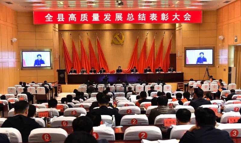 沛縣縣委書記李淑俠,縣委副書記、縣長蘇偉及縣相關部門負責人出席了會議。本次會議對2019年沛縣經濟開發區的各項工作進行了總結,對區內優秀企業、先進單位進行了表彰獎勵,嘉寓光能法人代表戰桐騰代表公司上臺領獎。